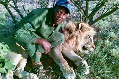 Meine Begegnung mit der Umweltinitiative von Reimar Gilsenbach begann mit einer ungewöhnlichen Exkursion Mitte der 80er Jahre. Umweltminister Reichelt hatte bildende Künstler und Schriftsteller zu einem Ausflug in einen Senftenberger Tagebau und auf den Kamm des Erzgebirges eingeladen. Die riesigen Tagebaunarben machten mich stumm und der von giftigem Rauch kahlgefressene Erzgebirgskamm führte unter uns zu heftigen Diskussionen. Auf der Rückfahrt, in der Baumschule Tharandt, zeigten uns Wissenschaftler Setzlinge, deren Aufwuchs das Erzgebirge möglicherweise retten könnte. Winzige Nadelbäume - ihre Verwandten waren, gegen Rauch resistent, am Fuße des Vulkans Fudschijama zu Hause. Ob die feinnadligen Japaner am Erzgebirge heimisch werden würden, konnte ich nicht ... hier weiterlesen (Bild: Andreas Mandjara, Assistent des Tierarztes, legt einem betäubten Junglöwen das Sendehalsband an) ... hier weiterlesen