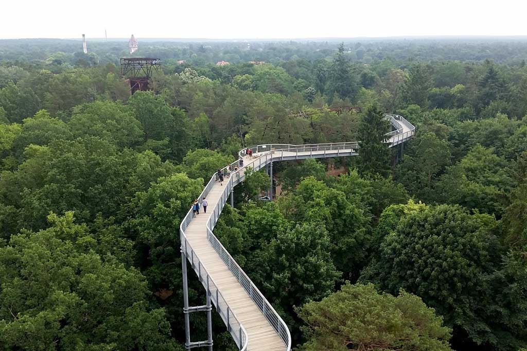 Bei einer Baumwanderung durch die teils verwilderte Parklandschaft mit Naturführer Claas Fischer galt es, so manche dendrologische Besonderheit zu entdecken. Eine Führung durch das Areal der Heilstätten vermittelte Details zur Architektur und aus dem Leben der Patienten zwischen Liegehalle, Speisesaal und Alpenschlucht, vom Baumkronenpfad aus ergab sich eine völlig neue Perspektive auf das Gelände der Lungenheilstätte und die mit Wald und Schlingpflanzen überwucherte Ruine des Alpenhauses sowie den spektakulären Dachwald.