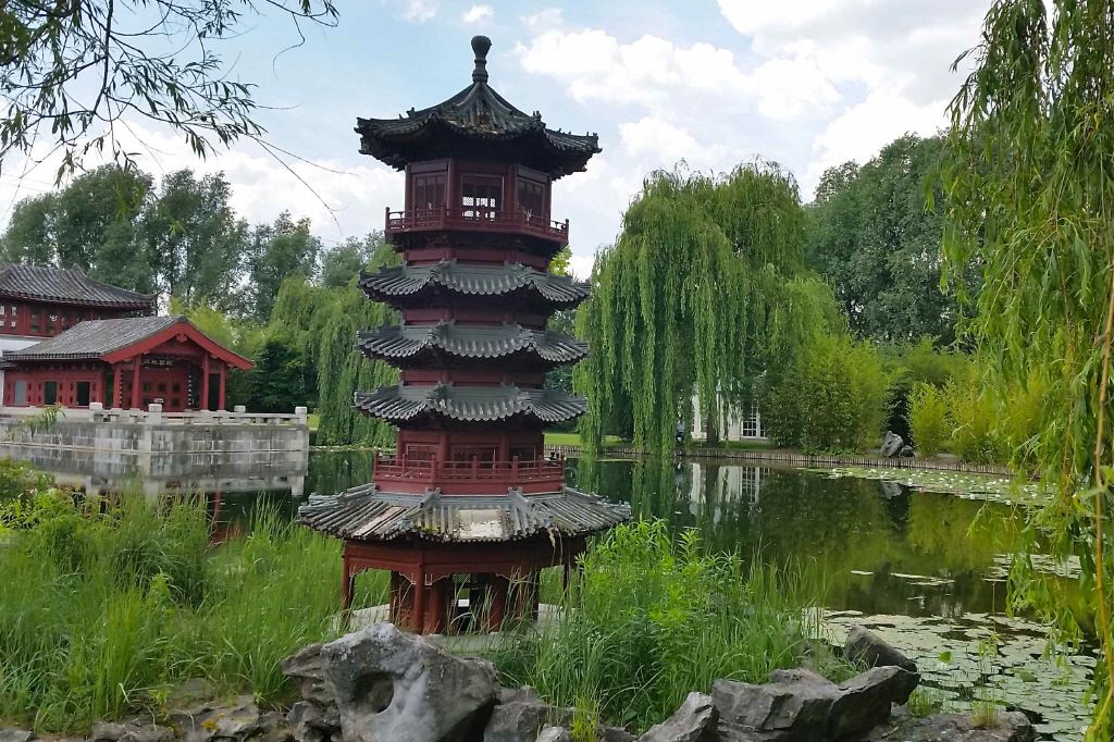 Die „Gärten der Welt“ befinden sich in einem Volkspark, der 1987 für die Bewohner der beiden großen Neubausiedlungen Marzahn und Hellersdorf angelegt wurde. Inzwischen sind sie zu einem beliebten Ausflugsort auch für Berlin-Touristen geworden. Neun liebevoll gestaltete Kleinode laden zu gärtnerischer Weltreise durch die Gartenkunst verschiedener Epochen und Kontinente ein. Verbindungen zwischen den weltweiten Garten-Kulturen werden sichtbar und ebenso, wie sehr unsere europäischen „westlichen“ Errungenschaften eigentlich auf „östlichem“ Gedankengut basieren.