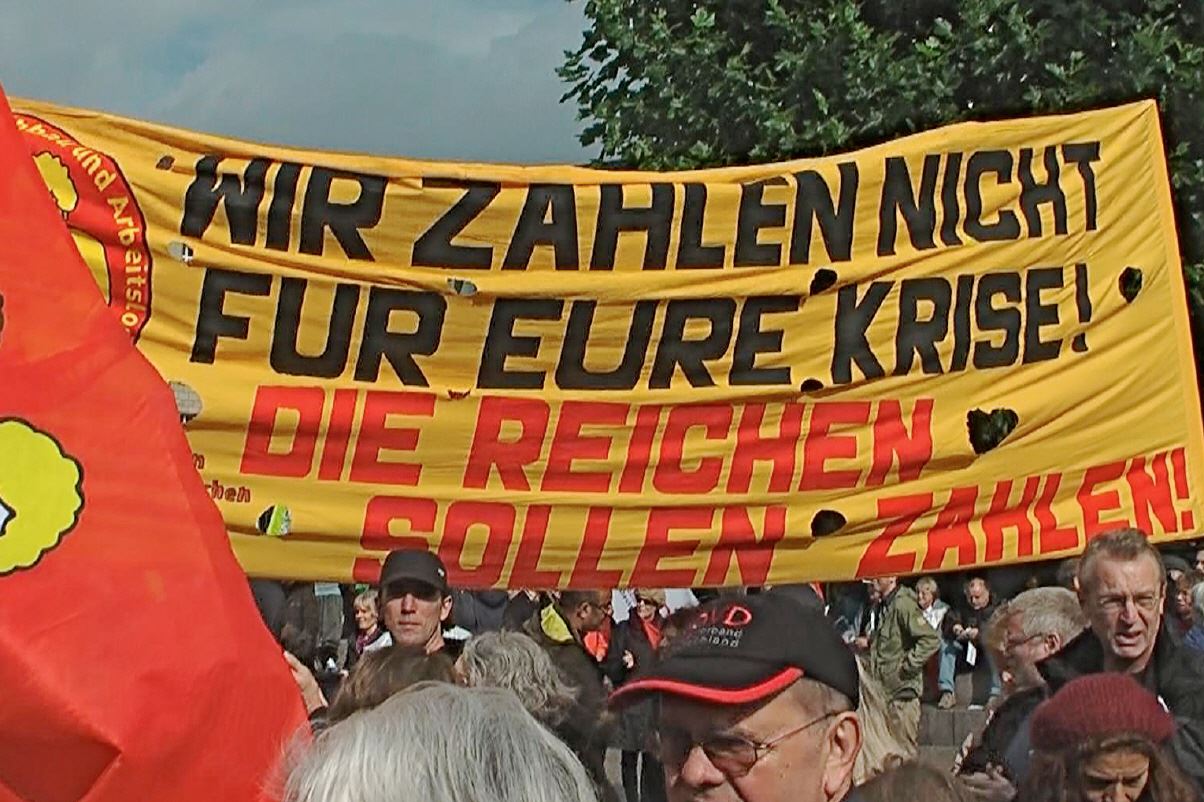 Premiere Wer rettet wen? Die Krise als Geschäftsmodell auf Kosten von Demokratie und sozialer Sicherheit Eine internationale Koproduktion der Kernfilm von Leslie Franke und Herdolor Lorenzwww.whos-saving-whom.org Seit fünf Jahren werden Banken und Länder gerettet. Politiker schaffen immer neue Rettungsfonds, während mitten in Europa Menschen wieder für Hungerlöhne arbeiten. Es wird gerettet, nur keine Rettung ist in Sicht. Der Film zeigt, wer dabei wirklich gerettet wird: Nie ging es um die Rettung der Griechen, nie um die der Spanier oder Portugiesen. Stets geht es nur um das Wohl der Hauptverdiener an diesen Krisen: den dort mit hochriskanten Spekulationen engagierten Banken. Uns Steuerzahlern und sozial Benachteiligten hingegen werden bis heute alle milliardenschweren Risiken zugemutet! Für große Banken ist die Finanzkrise dagegen vor allem ein Geschäftsmodell! Der Film entsteht als „Film von unten“, finanziert von ca. 2.000 Unterstützern, um aufzuklären. Die Premiere findet am 11. Februar zeitgleich an 150 Orten statt.