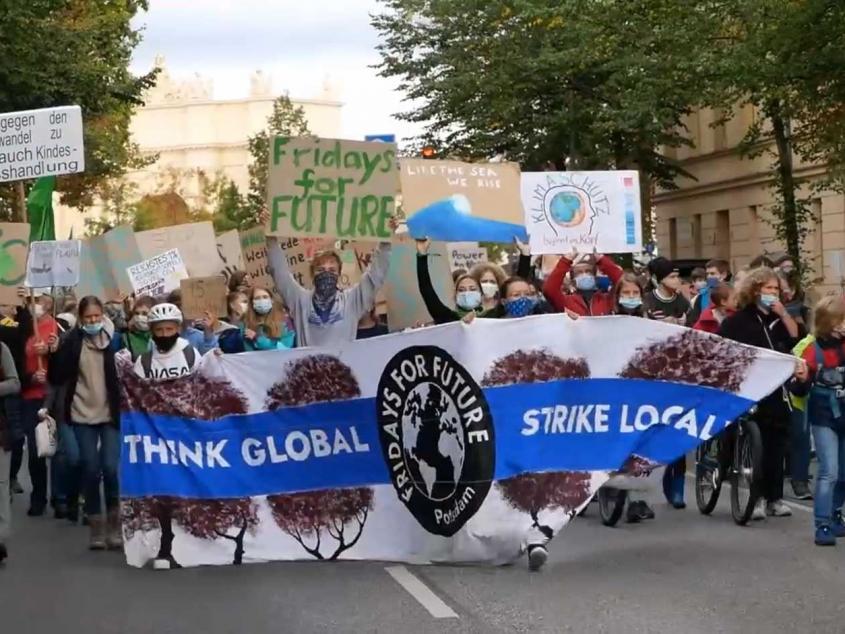Anschließend wurde ein Filmkonzept erarbeitet, in dem die Zielgruppe festgelegt und die Aussagekraft des Dokumentarfilmes durchdacht wurde. Wichtig war im Vorfeld zu überlegen, welche Filmaufnahmen und Interviews für den eigenen Dokumentarstil benötigt werden. In den kommenden Treffen der Gruppe gab es eine Einführung in die Kamera- und Filmtechnik. Vor dem Dreh wurde neben der Aufgabenverteilung auch die Route der Demonstrationszüge am 25. September in Potsdam besprochen. Die Gruppe hat sich am Drehtag in zwei Kleingruppen aufgeteilt, um sowohl beide großen Demonstrationszüge aus verschiedenen Perspektiven zu filmen, als auch mehrere Interviews während der Kundgebung zu führen. Ein intensiver und zugleich für alle spannender fünfter Workshoptag. Nach dem Drehtag wurde das gefilmte Material von allen gesichtet und zusammen unter Anleitung geschnitten, vertont und produziert. In einem abschließenden Treffen im Oktober fand die Premiere statt: es wurden drei fertige Filme auf der großen Kinoleinwand des Reimar-Gilsenbach-Saales im Potsdamer Haus der Natur präsentiert und über die unterschiedlichen Versionen begeistert diskutiert. Im Zuge dieses Workshops beschäftigten sich die Jugendlichen mit unterschiedlichen Aspekten der Nachhaltigkeit und lernten dabei einen eigenen Film zu drehen. Es entstanden insgesamt drei Dokumentarfilme, die die Jugendlichen mit Unterstützung von Fachleuten selbst herstellten. Dadurch fand eine intensive Auseinandersetzung mit dem Klimawandel, der aktuellen Pandemielage und der Reflektion von eigenem Engagement statt.
