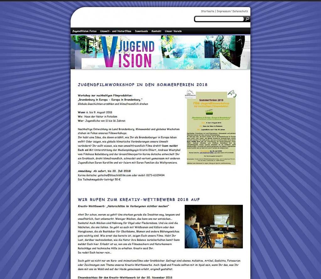 Zusätzlich entwickelte ab 2016 das Projekt "Jugendfilm-Diskurs/ Bildung für nachhaltige Entwicklung in Brandenburg" neue Ideen in der außerschulischen Bildung von Kindern und Jugendlichen. ....mehr