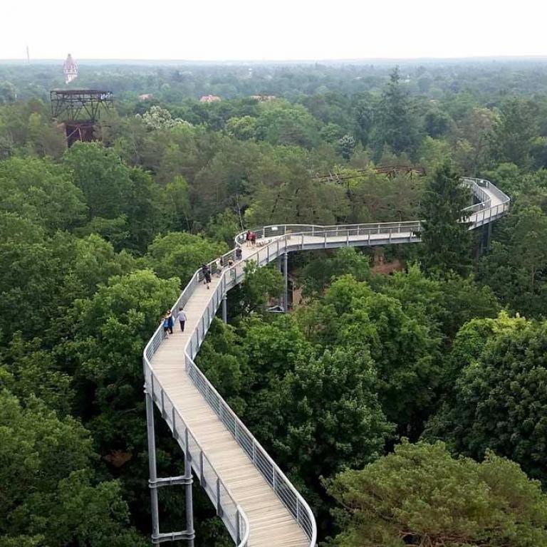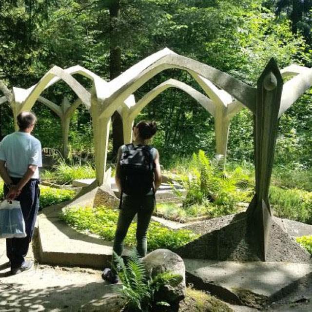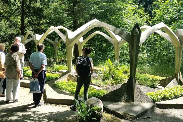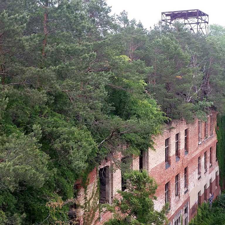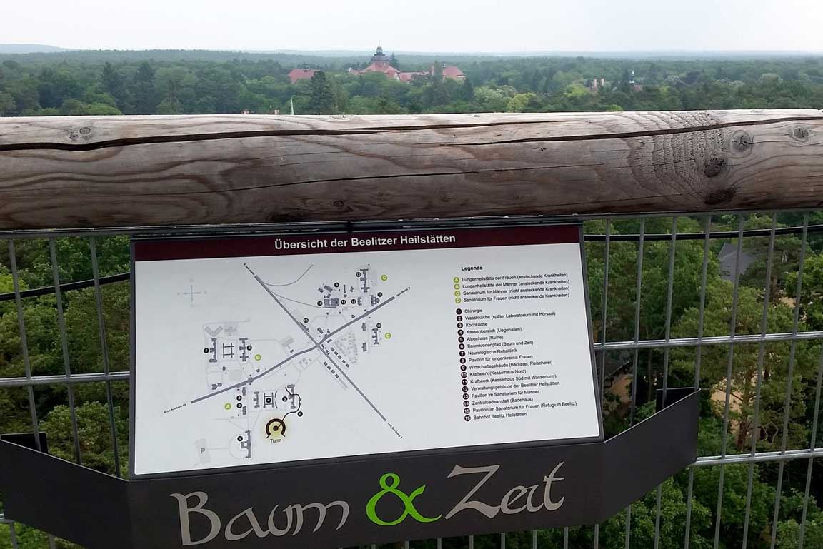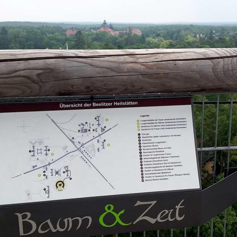 Bei einer Baumwanderung durch die teils verwilderte Parklandschaft mit Naturführer Claas Fischer galt es, so manche dendrologische Besonderheit zu entdecken. Eine Führung durch das Areal der Heilstätten vermittelte Details zur Architektur und aus dem Leben der Patienten zwischen Liegehalle, Speisesaal und Alpenschlucht, vom Baumkronenpfad aus ergab sich eine völlig neue Perspektive auf das Gelände der Lungenheilstätte und die mit Wald und Schlingpflanzen überwucherte Ruine des Alpenhauses sowie den spektakulären Dachwald.