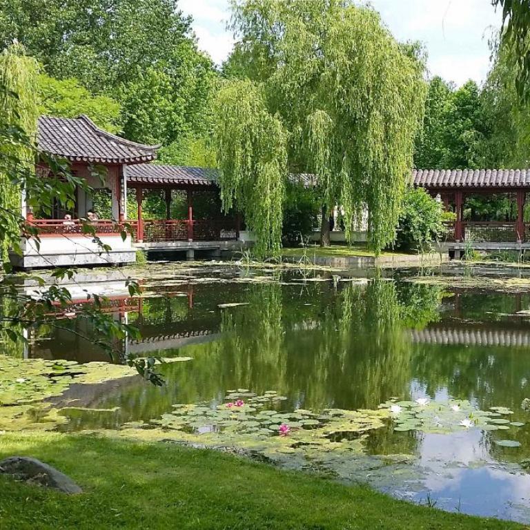 Die „Gärten der Welt“ befinden sich in einem Volkspark, der 1987 für die Bewohner der beiden großen Neubausiedlungen Marzahn und Hellersdorf angelegt wurde. Inzwischen sind sie zu einem beliebten Ausflugsort auch für Berlin-Touristen geworden. Neun liebevoll gestaltete Kleinode laden zu gärtnerischer Weltreise durch die Gartenkunst verschiedener Epochen und Kontinente ein. Verbindungen zwischen den weltweiten Garten-Kulturen werden sichtbar und ebenso, wie sehr unsere europäischen „westlichen“ Errungenschaften eigentlich auf „östlichem“ Gedankengut basieren.